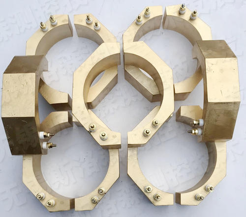 金属铸造加热器是以管状电热元件为发热体,并弯曲成型,进入模具用优质金属合金材料为外壳以离心式浇铸成各种形状,有圆型、平板、直角型、风冷、水冷及其它异型等。经精加工后它能和被加热体紧密贴合,铸铝加热器表面负荷可达到2.5-4.5w/cm2,zui高工作温度300-450℃之间;铸铜加热器表面负荷可达到3.5-5.0w/cm2,zui高工作温度500-600℃之间;铸铁加热器表面负荷可达到4.5-6.0w/cm2,zui高工作温度 550-700℃之间。金属铸造加热器是一种高效热分部均匀的加热器,热导性极佳的金属合金,确保热面温度均匀,消除了设备的热点及冷点。具有长寿命、保温性能好、机械性能强、耐腐蚀、抗磁场等优点。将外散热面增加保温装置,内散热面烧结红外线这样可节约用电35%。